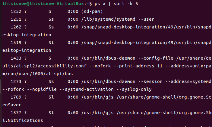 ps x | sort -k 5